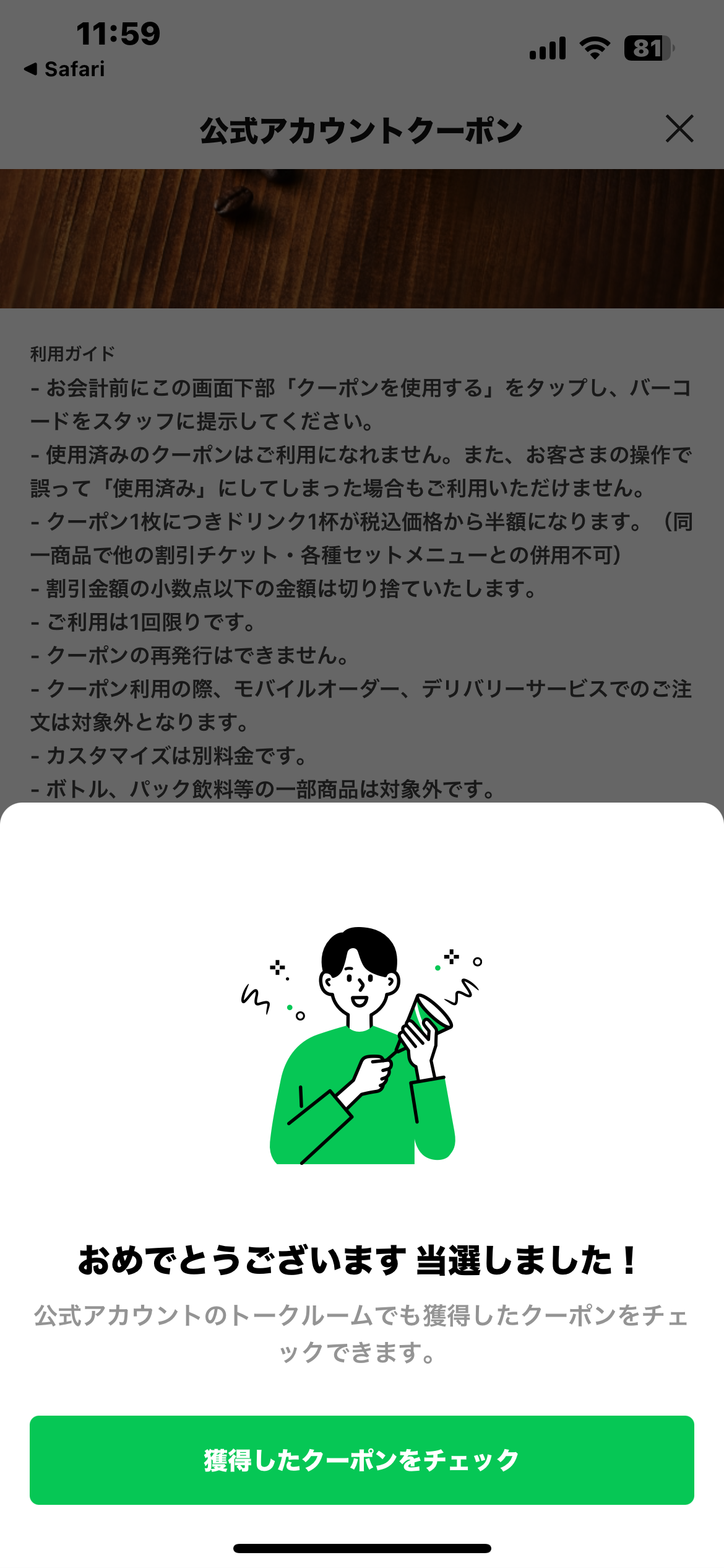 半額クーポンの抽選に当たりました🎯👏 ありがとうタリーズ様•*¨*•.¸♬︎