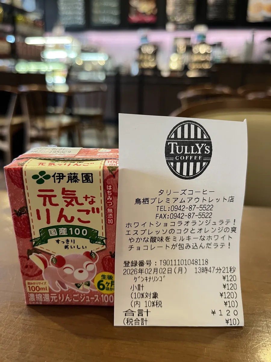 レシートの時間を読むとちょうど1時間でした鳥栖プレミアムアウトレット店→福岡徳洲会病院店