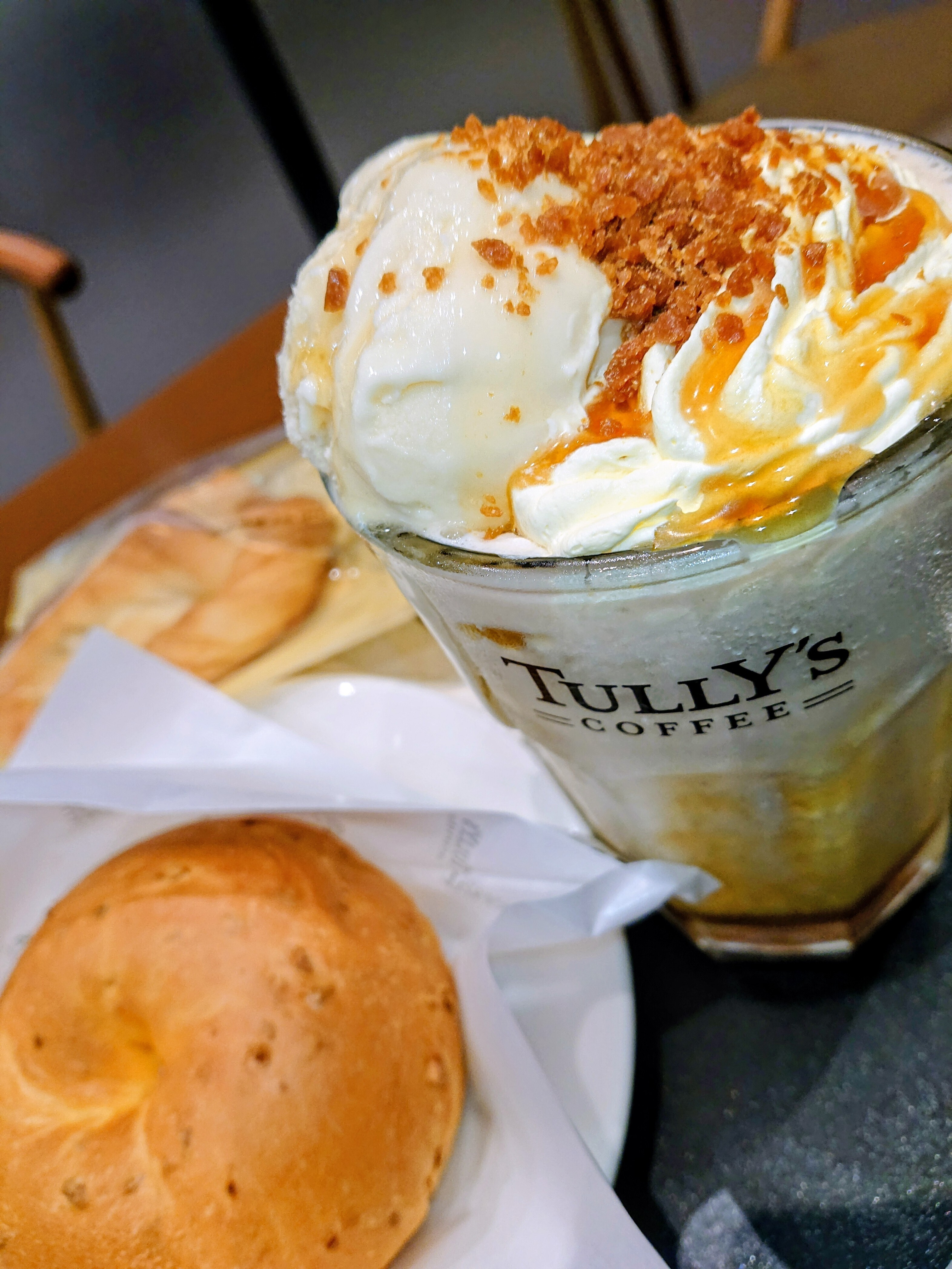 カラメルOIMOティーシェイクにバニラアイス載せ。