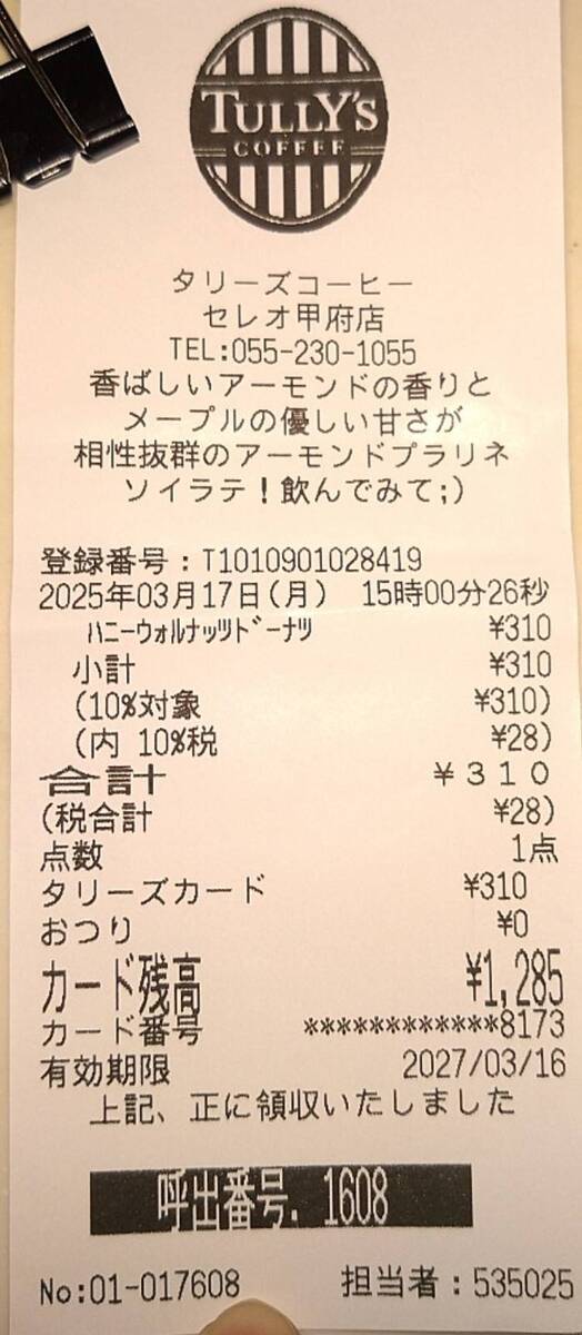 今日、家の近くのタリーズに行ったら