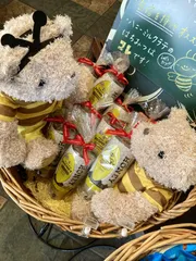 ホムタリでハチコにやっと会えた🐝🧸 ハチコ✖️2🐝🧸見つめ合う姿も後ろ姿も可愛らしい これが最後⁈と来店したけど、OIMOドリンクは全て売り切れ🥲紅はるかとりんごのタルトをいただきました🍎🍠