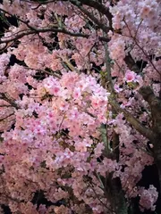 桜が咲きはじめました 急に早咲きの桜が満開になりました!写真は夜桜です種類はわかりませんが、早咲きで花びらが少し大きめのピンク色が濃い桜です🌸そのせいか「オモチャみたいな桜」と言ってる人がいました😄ソメイヨシノはまだもう少し先みたいですタリーズに行く途中できれいだったので…お腹がへったのでタリーズでタコミートのホットドッ
