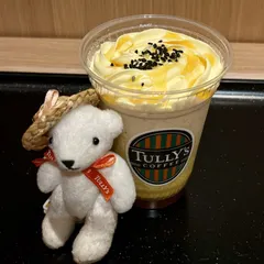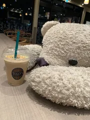 出かけた先の駅前にあったタリーズで🍯と八天堂とのコラボOIMOクリームバンをお持ち帰りさっそくアンケート回答してハチコさん応募しましたよ🐝🧸あっ、初めてハチコさんベアーにも会えました✨