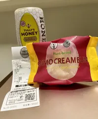 昨日のタリーズです🙂↕️ 『八天堂×タリーズ プラントベース OIMOくりーむパン』 ワタクシの分、父にお供えしちゃったので、ホムタリでいただきました めっちゃくちゃ、美味しかった とろ~り豆乳クリームたーっぷり‼ でもしつこくない 小麦も香るし これ、