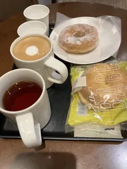 今日はベーグルサンド瀬戸内レモン&クリームチーズをいただきました 初めてなので、とりあえずイートインで冷たいままでしたが、おいしいかったです😋 初めて食べるフードにはオリジナルティーを飲むことが多いです 今日もオリジナルティーで 友人はシュガードーナツ