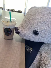 今日も暑い🥵ですね^ - ^ 今日はOIMOラテにヘーゼルシロップ追加してみました☺️ ティーシェイクよりラテのほうが合う気がしたので^o^ベースがカフェラテなので、香ばしい風味が加わった感じで美味しかったです😋 今日のベアフルちゃんは、手を下ろしてました😆