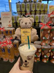 久しぶりのハニーミルクラテ🍯 先日店舗の仲間になったみつばちベアフルのハチコ🐻1年間販売隊長として店舗にいます😊希望した店舗には現れると思います♪ 今日は久しぶりにアイスハニーミルクラテのホイップトッピングにしました💕 ハチコ可愛い😍ですね☺️プレゼント🎁企画も始まるみたいなのでGETできたら良いなぁ💕&nb