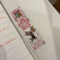 ケーキのケースについてたトムジェリのシールを、今年も手帳に🌸文字しかない殺風景なページが可愛くなるのでありがたいです。 ケーキのシールを手帳に貼ることが年中行事になりつつあるような気がする…😆