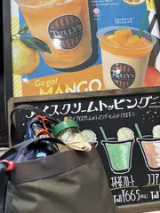 画像の何年か前のハッピーボックス付属のトートバッグに隠れている昨年のタンブラーというかボトル今年のタンブラーで「&TEA 瀬戸内レモンのはちみつリモンチェッロ フローズンティー」をいただくと