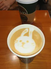 はい フェローさんチョイスのラテアートです キャラクター系のラテアートはほっこりしますね