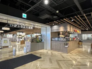 図書館との併設店は楽しいですよね とてもよい店舗なんですが、遠かったです💦