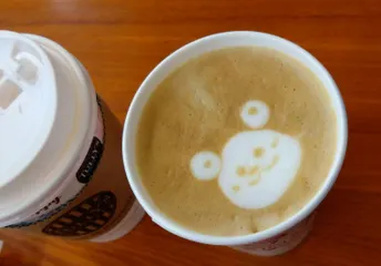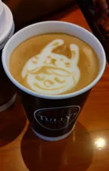 過去の画像になりますがスマホの中にタリーズコーヒーのフェローさんによるラテアートの写真を保存してあるのでアップします このラテアートもうさぎさんのラテアートですがその時その時で表情があり楽しませていただけます隣のカップはロイヤルミルクティーのエキストラホットを頼んだらこちらにはスリーブにメ