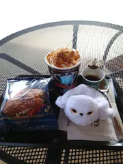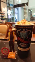 ハリポタわかりませんが、コラボ品が好きなので、毎回楽しみにしています🙂 パンプキンラテ( ホット)を豆乳変更で。トッピングのクラッシュパイが美味しかったです😀全部混ぜたら、甘くなったので、単品で飲むのは、キツイかな…。 パンは、しっとりデニッシュに、中のブルー板チョコが甘すぎず、