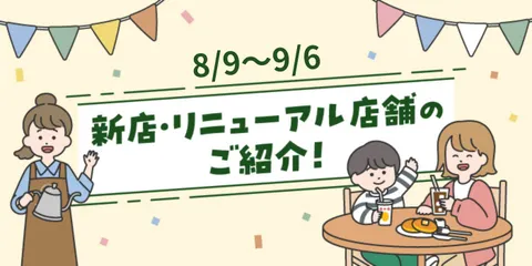 【8/9~9/6】新店・リニューアル店舗のご紹介!