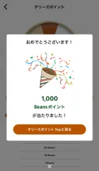 1ヶ月ぶりくらいに1000Beansポイントが当たりました✨嬉しいです😊