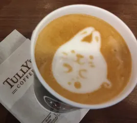 買い物帰りにちょっと一息ホッとする癒しの時間に優しさプラスのラテアートありがとうございます tully's coffee 会津若松店にて撮影