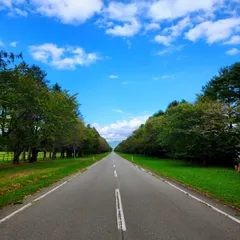 北海道最高!part.2 北海道らしい。まっすぐな道。二十間桜並木。両脇の桜が咲くと、さぞ綺麗でしょう。でも私は緑豊かで、人の少ないときに来たかったのです😄