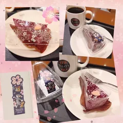 すごい! 久しぶりのタリーズ今回のトムジェリシリーズのケーキ頂きました😊ふと、ケースのシールはがせるかと試したら剥がせました😊👍手帳にはりはりしていざ!ケーキ食べようと外のフィルム剥がしてあら?フィルムにまでトムジェリのプリントが💕😳お味も👍😊さっぱりカシスの酸味が甘さを抑えていて美味しかったです💕ごちそうさ