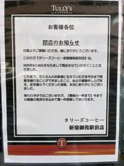 新宿御苑駅前店 2025/08/30閉店 ジャスミンさんの情報をもとに2025/08/30閉店してしまう新宿御苑駅前店へ行ってきたました 新宿御苑に行く前にここでコーヒーを買って持ち込むことができなくなってしまいます少し歩くけれど、新宿二丁目店で買っていけばよいかな?ペット同伴OKのテラス席も特徴でした20年間のタリーズ営業、店舗