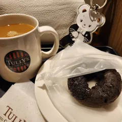 モカジャバ&ビターカカオドーナツ&… おはよーございます☀️桜も葉桜になりつつありますが気持ちの良い朝ですね。今日は母との買い物前にタリーズへ。モカジャバ&ビターカカオドーナツ。モカジャバ美味しい😋☕💕チラッと燕尾服クマと共に🎵