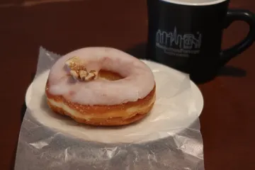 今日のおやつはハニーウォルナッツドーナツ 蜂蜜風味の甘さウォールナットの香ばしさは珈琲にベストマッチするオールマイティフードの印象