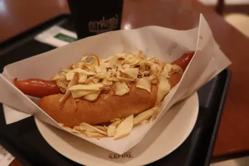 今朝はボールパークドッグ こぼれるスモークチーズ&サルサがある店を見つけ頂きました。注文の際にボールパークドッグのこぼれるスモークチーズ&サルサと珈琲でとお伝えすると今の時間帯ならシンプルドックと珈琲がセットでお得ですよ単品で注文されますか?とお得な商品の説明をしていただき対応が素晴らしいと思いなが