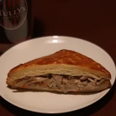 デニッシュサンド4種のキノコサラダ ちょいピリ辛ですが 甘いドリンクと相性良いよ!とオススメして 2人で食べましたこの写真撮るので必死で(友の推し色🟡のベアフルです)後から気がついた😅頼んだドリンクと違かった😭友が あークリーム沈んちゃうよーと言って あら?私のクリームは? あれ? 初めからなーい