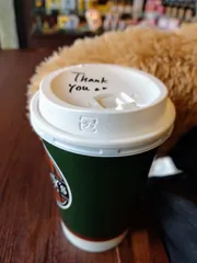 ハマってます!('ω')ノ 今日は、ドリンクの飲み口が、正しく(?)置かれていて... 手も添えられていて、ホッとしました。(o^―^o)ニコ それも納得のシフト。 今日は、昨日の学生新人フェローさんとは違い、お馴染みの仲良しフェローさんお二人とも揃っていらっしゃって(「蜂