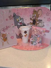 オリジナルティーをトールサイズ持ち帰りで頼んだら、トムジェリカップでした😊 やっぱり嬉しいですね〜 家に帰って水洗いしたら、底面と側面のあいだの隙間が茶色くなってしまったけど、しばらく飾っておこうかなと思いました🌸