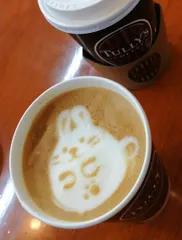にゃんこのラテアートフェローさんの気持ちが伝わる優しい表情で癒されます テイクアウトカップのコラボデザインもかわいいなと毎回思います Tully's coffee 会津若松店にて撮影(2023年2月13日)