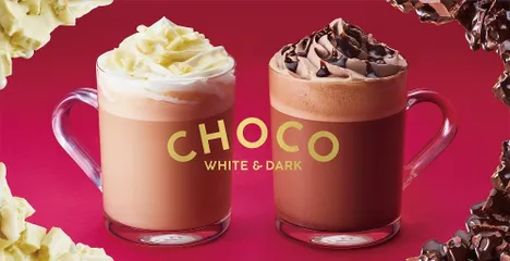 \ 2025年1月8日(水)からバレンタインシーズンを楽しむロマンスプロモーションが始まります♪ /1月8日からの新商品は冬の寒い時期に心温まるチョコレートドリンクを、バリエーション豊かにお届けします!「チョコレートLOVERSモカ ~ダークな誘惑カカオ73%~」と「&TEA ホワイトショコラロイヤ
