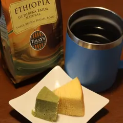 エチオピア G1 デベカ農園 ナチュラルの風味に合うフードにと米粉のバームクーヘン2種(抹茶とプレーン)と合わせてみました。コクのバランスはどちらも合い、口に広がる風味はプレーンの方が合うイメージに感じました。