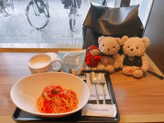 ★フレッシュトマトとベーコンのパスタ★ロイヤルミルクティー★ホリデーオーナメントビスケット タリーズのパスタ美味しい😋パスタは食べられる店舗が限られてるから、食べられる店舗ではつい食べちゃう😆 ホリデーの先取りとはこの事✨オーナメントの形が可愛いビスケット😊2種類の味が入ってるん