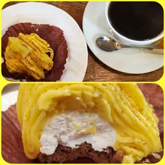 商業施設に入ってるカフェで 買い物を済ませた後ひと休み。 サツマイモのモンブランとコーヒーでまったり。