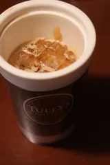 バレンタインデー 母の通院付き添いが無事終了し後を妹に任せ、帰路から一番近くのイオンスタイル東淀川のタリーズへ。春かと思わせる日和なので迷う事なく冷たいドリンクを。エスプレッソシェイク(ホイップクリーム&キャラメルソース追加)とアップルパイを頂きました。ほろ苦いエスプレッソにまろやかなクリームとキャラメルソースのほの