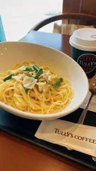 ランチにレモンクリームパスタいただきました(with水出しアイスティー)長居をしたので、後からワンモアでアイスコーヒーも❤️まったりゆっくり、幸せ時間でした〜