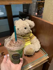 今日は仕事の勉強会が日中にあり、その後用事を済ませて夜タリーズ寄っちゃいました😆 モンブラン・オ・ショコラ抹茶シェイクにエスプレッソショット追加^ - ^ 美味しくいただきました😋 こちらの店舗のハチコさんは名札📛ついてました😊しかも⭐️3つ。思わず一緒に撮ってしまいま
