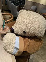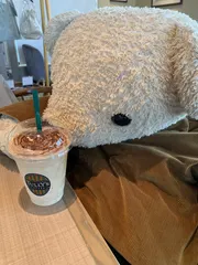 今日は曇り空からのあいにくの雨☔ 肌寒くなってきたので、ホットの和栗モンブラン・オ・ショコララテ^ - ^もちろんシロップは多めで😋 やはり甘めにした方が栗🌰感が味わえて美味しいですね☺️ 今日のベアフルちゃんは横顔にしてみました💕