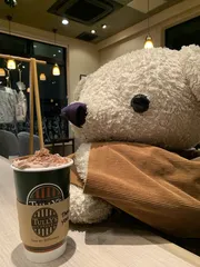 ハチコと一緒に(・∀・) 今日は仕事の勉強会が日中にあり、その後用事を済ませて夜タリーズ寄っちゃいました😆 モンブラン・オ・ショコラ抹茶シェイクにエスプレッソショット追加^ - ^ 美味しくいただきました😋 こちらの店舗のハチコさんは名札📛ついてました😊しかも⭐️3つ。思わず一緒に撮ってしまいま