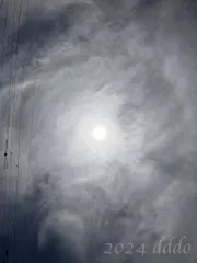 暈(かさ)、Halo (ヘイロー)のかかった太陽、くも多め