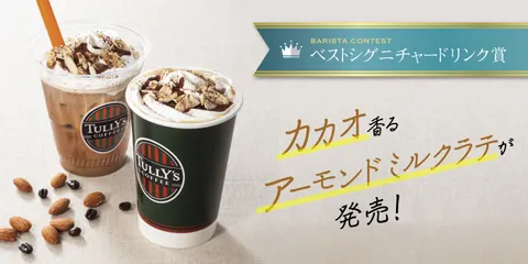 店舗フェロー考案のドリンク「カカオ香るアーモンドミルクラテ」とは?今回は、2024年3月13日に発売した「カカオ香るアーモンドミルクラテ」をご紹介!こちらのドリンクはなんと「店舗のフェロー」が考案したドリンク✨発売に至るまでのストーリーをご紹介します!ベストシグニチャー賞とは?タリーズバリスタコンテ