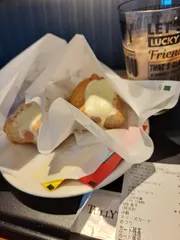 写真ぶれてますが💦ソイラテと、ボールパークドッグ3種の北海道チーズメルト🧀新商品の淡路玉ねぎのスイートチリ🌭にしようとしたら結構辛いとの事だったので辛いのが苦手なので諦めました。 🌭はいつもケチャップを使わないので、マスタード2つにしてもらえないか思い切って聞いてみましたが、やはり出来ない