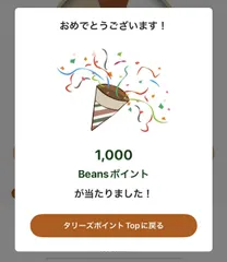 当たった🎯 あけましておめでとうございます🎍今年もゆるりとマイペースで参加します😊さっき1000Beansポイントが当たりました🎯お正月から嬉しいです😆 1番近くのタリーズの店舗がなくなり🥲行きにくくなってしまい、出かけた時には行くようにしています😇 Sは近場にありますが、あまり利用したくな