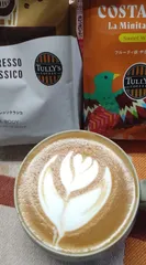 今朝はダッシュでタリーズへ来ました✨ホットカフェラテ☕️たっぷりめのハニー🍯めちゃくちゃ美味しくて、幸せ💛作ってくださったフェローさん、ありがとうございます😊 ポイさんのホムタリだと思います。ステキなひとときを過ごせるお店でした✨