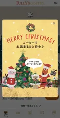 アプリを開いたら、可愛いのが出てきた〜!今年クリスマスっぽいことが出来なかったから、ちょっと癒されました♩プレゼントありがとう!!タリーズ!!☕️