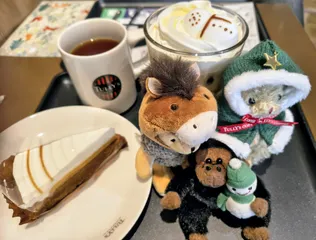初日にスノーマンラテ、翌日アイリッシュラテを頂きました。スノーマンラテはバニラ風味の優しい甘さで飲みやすく、アイリッシュラテは焦がしキャラメル味が香ばしくどちらも美味しかったです😋3番目の店舗にあったマルチバッグチャー厶が欲しかったんだけど隣のベアさん🧸を手に取ったら可愛くて(お迎え)する事に決めま