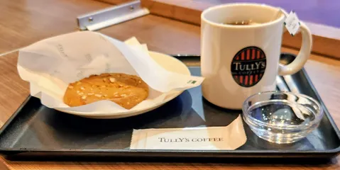 おはようございます。 ゆっくりめのフレックス出勤。 いつもの駅の階段を降りきった時に「あ、TULLY'S」と思い立ち、階段を途中まで上がり TULLY'SへGO。駅ビルのM2階にあるので、楽々。いつもひらめき💡でスイーツを買うのですが、今朝はソフトクッキーの気分だったので2枚購入。お昼が楽しみです。