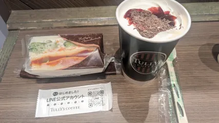 LINE10%クーポン LINE10%クーポンを使って☕新作🍒チェリーの実も入ってて美味しかった☕エクストラホイップとソース増量で✨