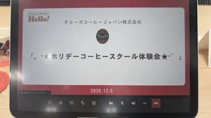 「ホリデーコーヒースクール体験会」に参加しました緊張のハンドドリップ体験、おいしく楽しいホリデーローストの飲み比べとスイーツとのマリアージュ、童心にかえった可愛いリース作り、気さくでフレンドリーなタリーズフェローさんとタリーズ愛あふれるコミュニティの皆さんとの楽しい時間 そして特別ゲストの大きなベア