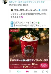 ralikkumaさん情報から早速X(Twitter)でフォロー&リプライしました。500円分のデジタルギフト当たると良いね!